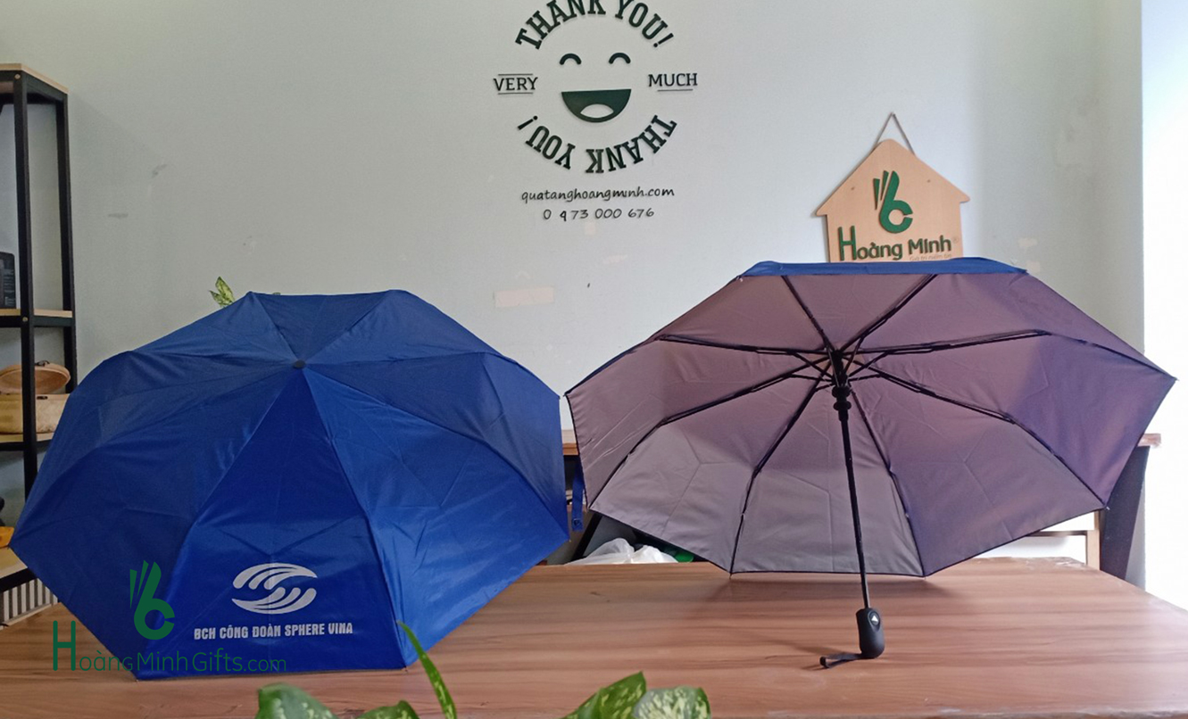 - Ô gấp 3 tự động 1 chiều, 8 cánh, thân và xương bằng kim loại, sơn tĩnh điện đen, chống rỉ, tay cầm nhựa có dây.