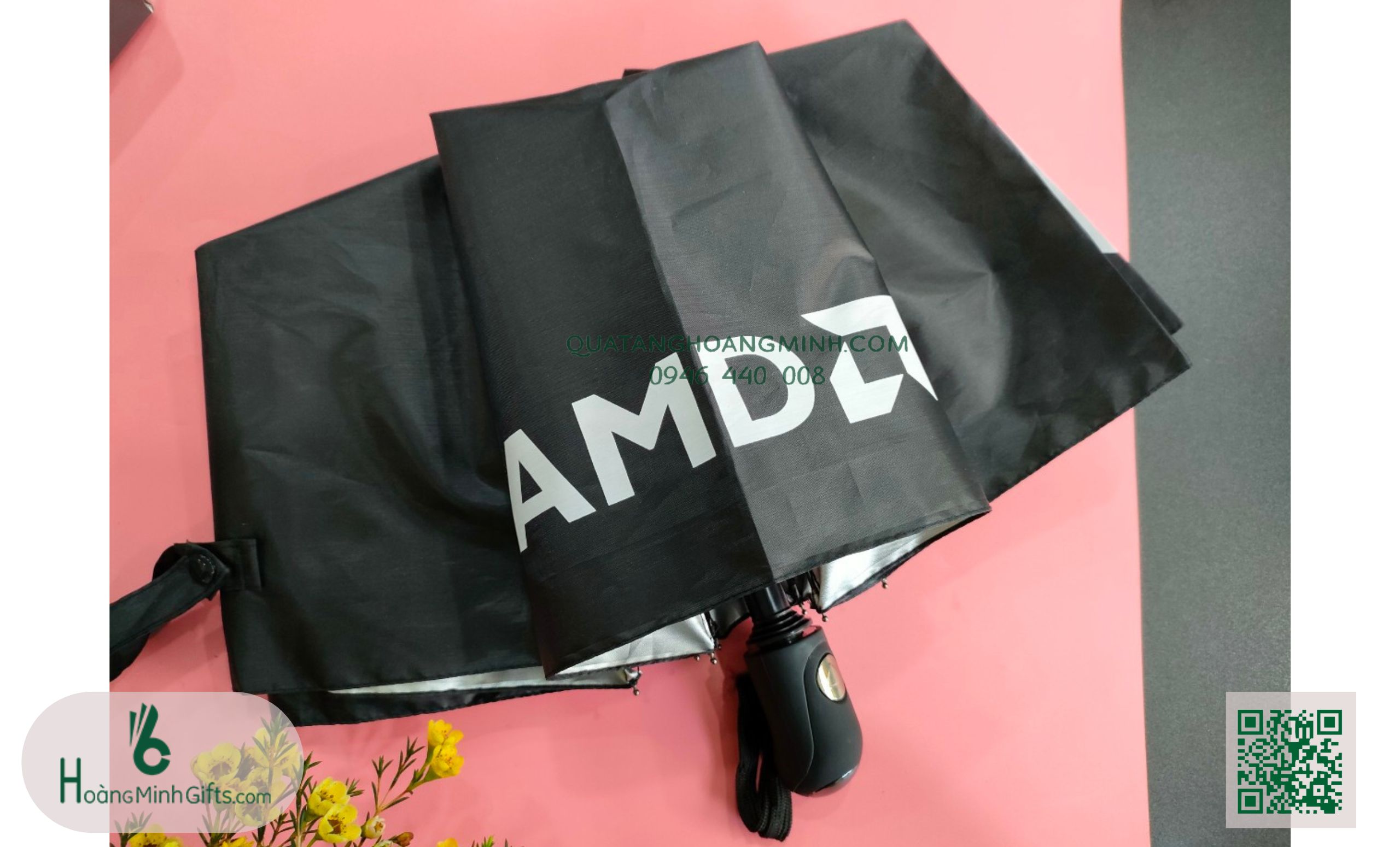 Thông tin sản phẩm: Ô GẤP 3 BÁN TỰ ĐỘNG - KHÁCH HÀNG AMD - Ô gấp 3 tự động 1 chiều, 8 cánh, thân và xương bằng kim loại, sơn tĩnh điện đen, chống rỉ, tay cầm nhựa có dây. Phụ kiện: vỏ ô in ấn theo...