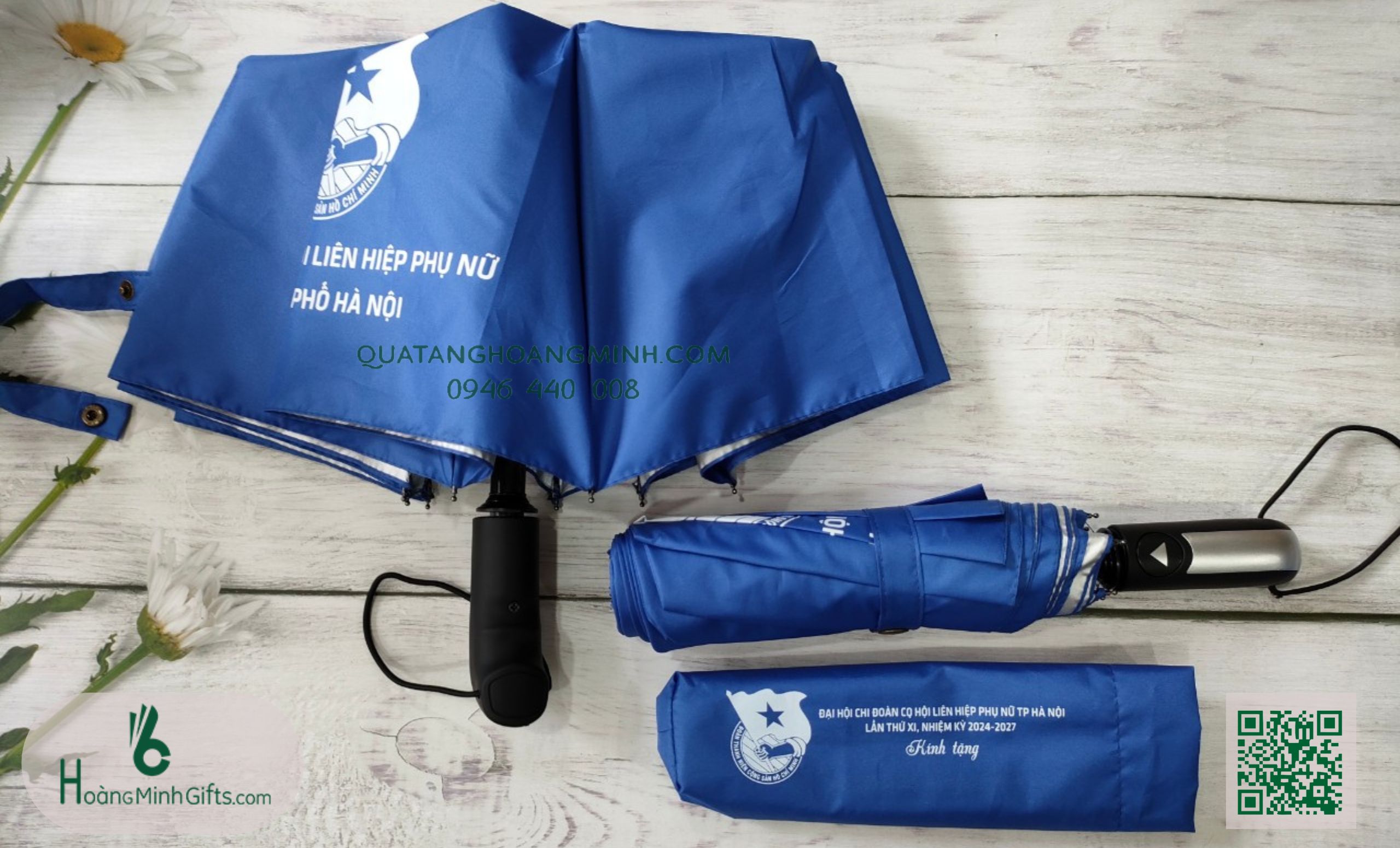 - Ô gấp 3 tự động 1 chiều, 8 cánh, thân và xương bằng kim loại, sơn tĩnh điện đen, chống rỉ, tay cầm nhựa có dây. Phụ kiện: vỏ ô in ấn theo yêu cầu.