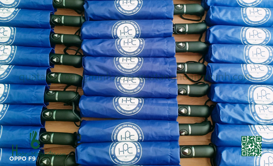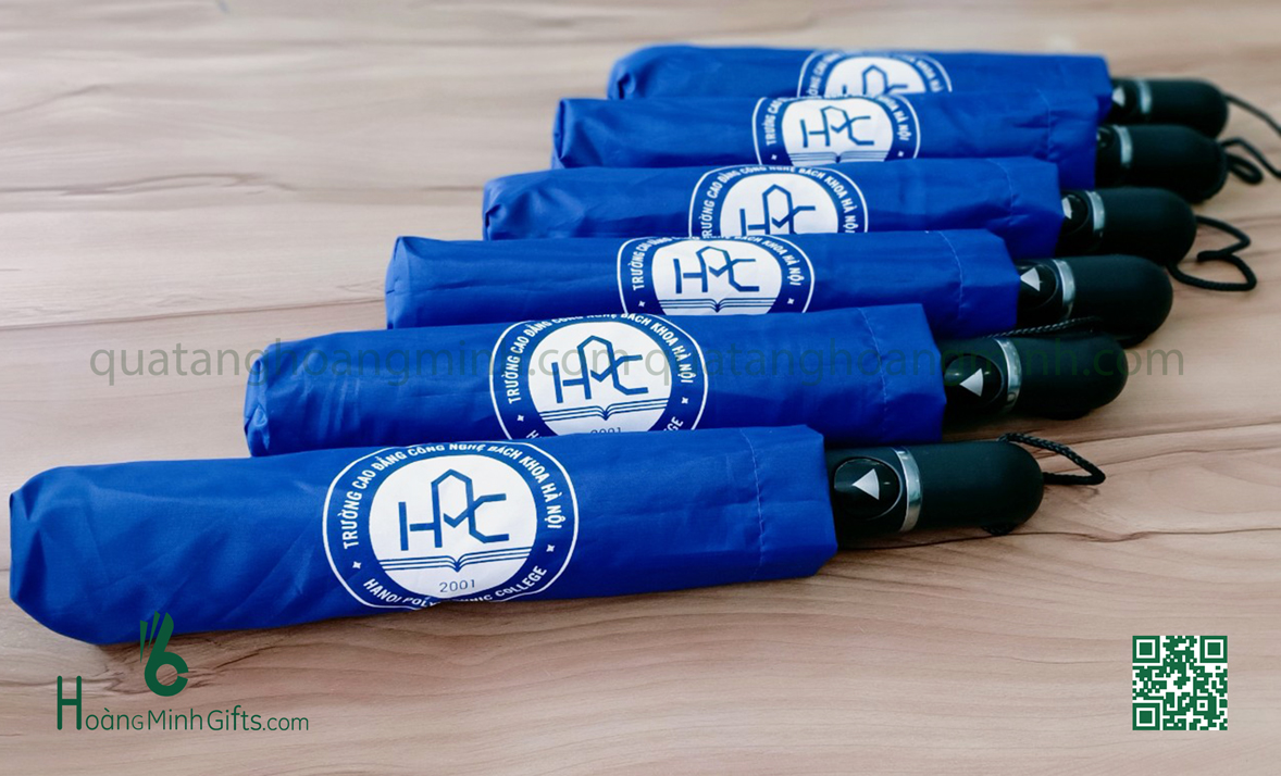 - Ô gấp 3 tự động 1 chiều, 8 cánh, thân và xương bằng kim loại, sơn tĩnh điện đen, chống rỉ, tay cầm nhựa có dây. Phụ kiện: vỏ ô in ấn theo yêu cầu,