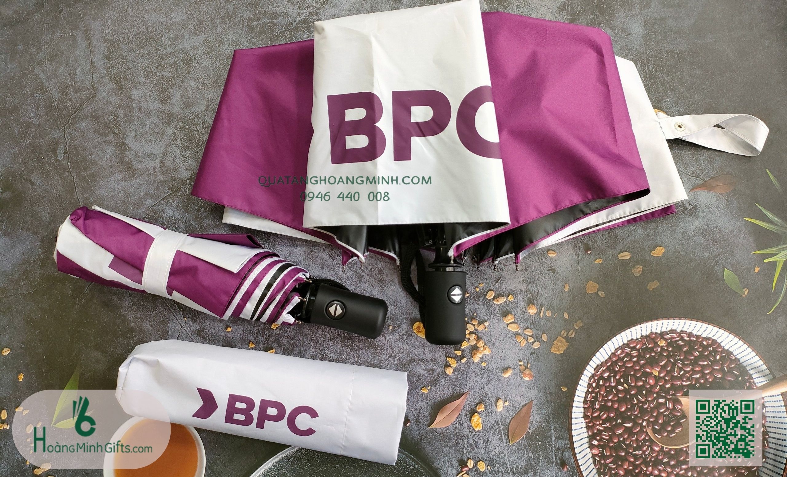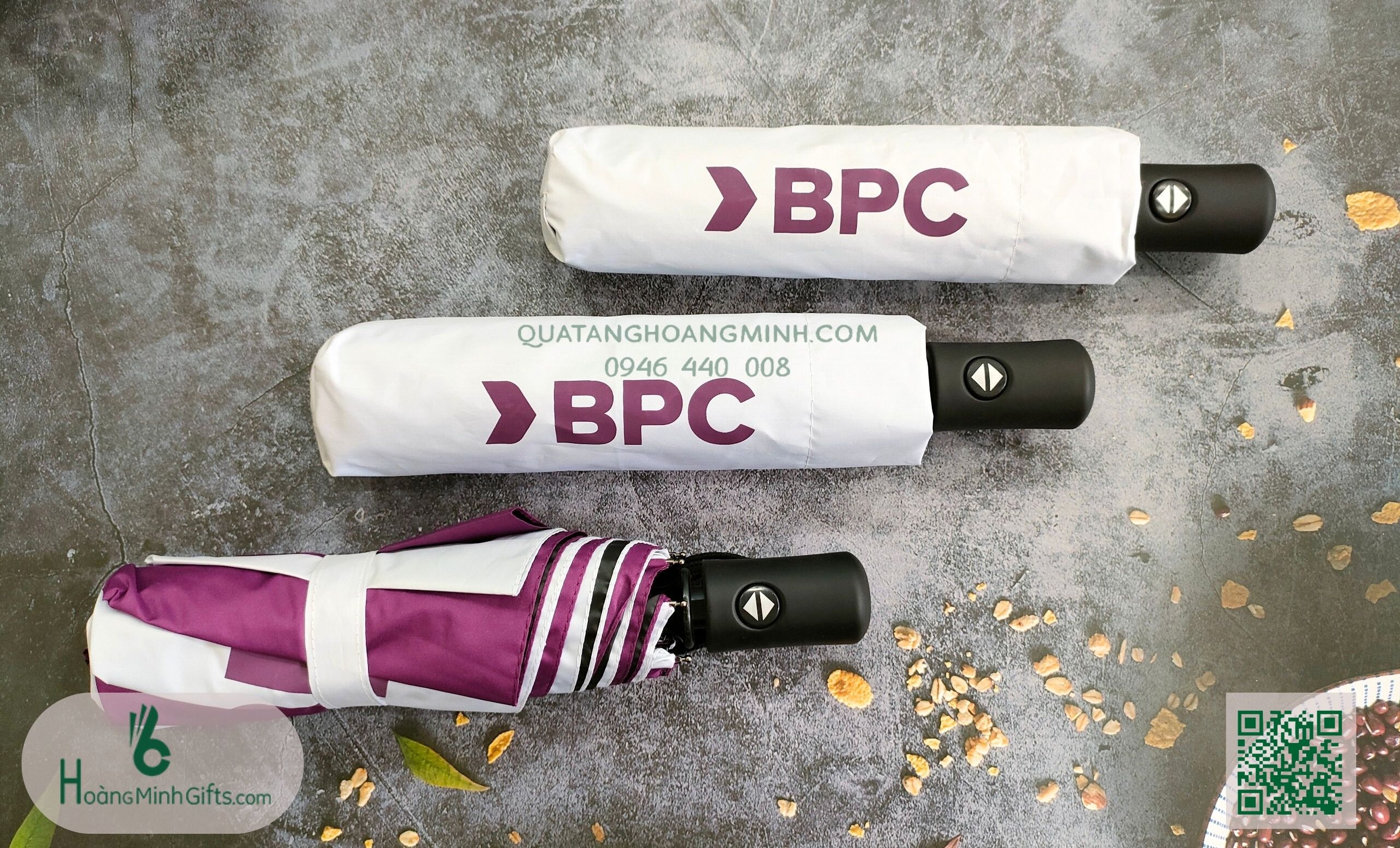 - Ô gấp 3 tự động 2 chiều, 10 cánh, thân và xương bằng kim loại, sơn tĩnh điện đen, chống rỉ, tay cầm nhựa có dây. Phụ kiện: vỏ ô in ấn theo yêu cầu.