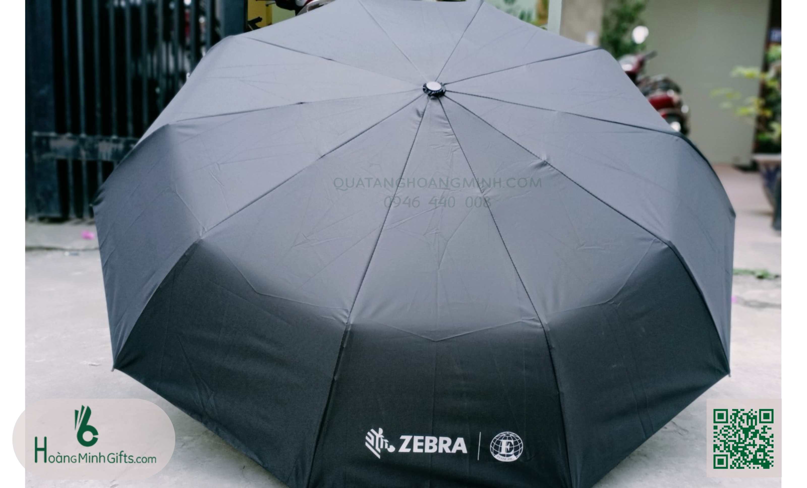 - Ô gấp 3 tự động 2 chiều, 10 cánh, thân và xương bằng kim loại, sơn tĩnh điện đen, chống rỉ, tay cầm nhựa có dây. Phụ kiện: vỏ ô in ấn theo yêu cầu,